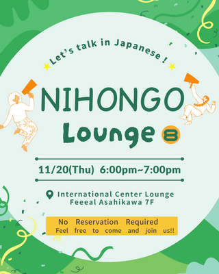 にほんごで お喋りしませんか?Let's talk in Japanese! 11月20日(木) 18:00~19:00@国際交流センターラウンジ Would you like to practice your Japanese?Let's have fun speaking in Japanese