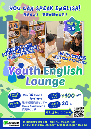 (ENGLISH BELOW) 英語で交流できる場としてFun Fridays Spring Session がスタートします。 レベルは気にせずに、楽しく英語で話しましょう。 お申し込みはこちら 0166-25-7491 ※4月から参加費が2,000円となります 《開催日時》 昼の部 : 第2・第