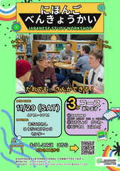 にほんごをならいたいひとがだれでもさんかできる ゆる〜いべんきょうかいです! AICのボランティアのみなさんがせんせいです 日時:11月29日(土)16:00~18:00 場所:旭川市国際交流センター 交流ラウンジ(フィール旭川7階) 参加費:無料 定員:なし 持ち物:テキストで勉強している人は自分
