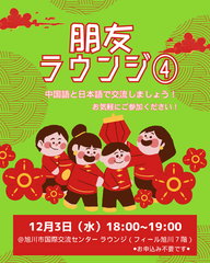 中国語と日本語で、お喋りしませんか?一起用中文和日语聊天如何? 朋友ラウンジ、第4回開催のお知らせです!来参加我们第四次举办的朋友交流会吧! 12月3日(水)18:00~19:00@国際交流センター ラウンジ12月3日(星期三)18:00~19:00@国际交流中心 交流空间(Lounge) どのレベ