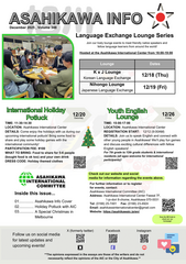 12月の「◯◯ラウンジ」はちょっぴりいつもと違う企画を用意しています。 その他にもイベント盛りだくさん! ぜひ皆さん遊びに来てください #旭川 #国際交流 #多文化共生 #Asahikawa #international